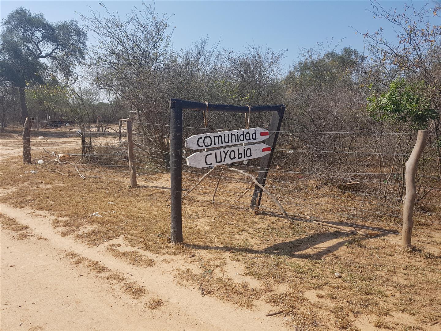 A la tarde visitamos una comunidad indígena ayoreo con el nombre “Cuyabia”, unos treinta km al sureste de “Monte Claro”. El acceso a esta comunidad es por la Picada 559 (km 559 de la Transchaco), la picada Michel o por la Picada 108 pasando por la Estancia “Los Lazos”. El líder de la comunidad, Unine Cutamurajai nos dio la bienvenida, y con la presencia de varias personas se tuvo un tiempo de intercambio donde contaron su historia y los desafíos como comunidad.