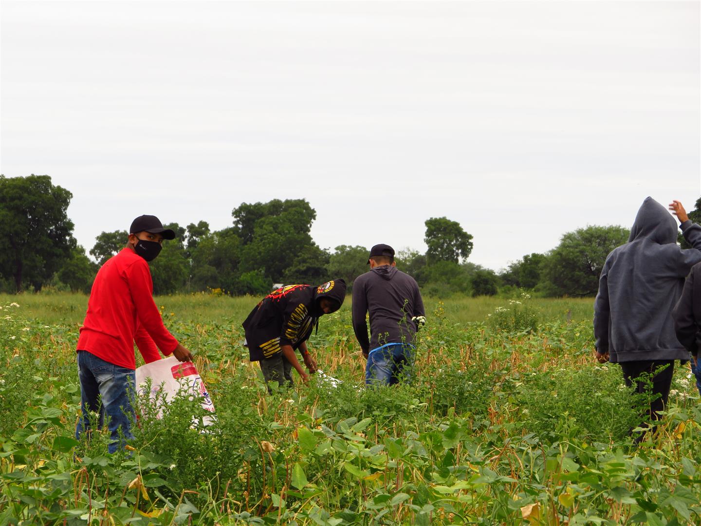 Los estudiantes del Centro Educativo Indígena Yalve Sanga participan de la cosecha de poroto en la chacra de la institución educativa.