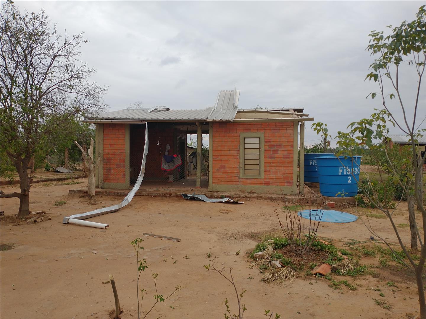 La situación que se presentó fue la siguiente: 15 viviendas destechadas, árboles destrozados, chapas y otros artículos domésticos esparcidos por los patios y sus chacras.