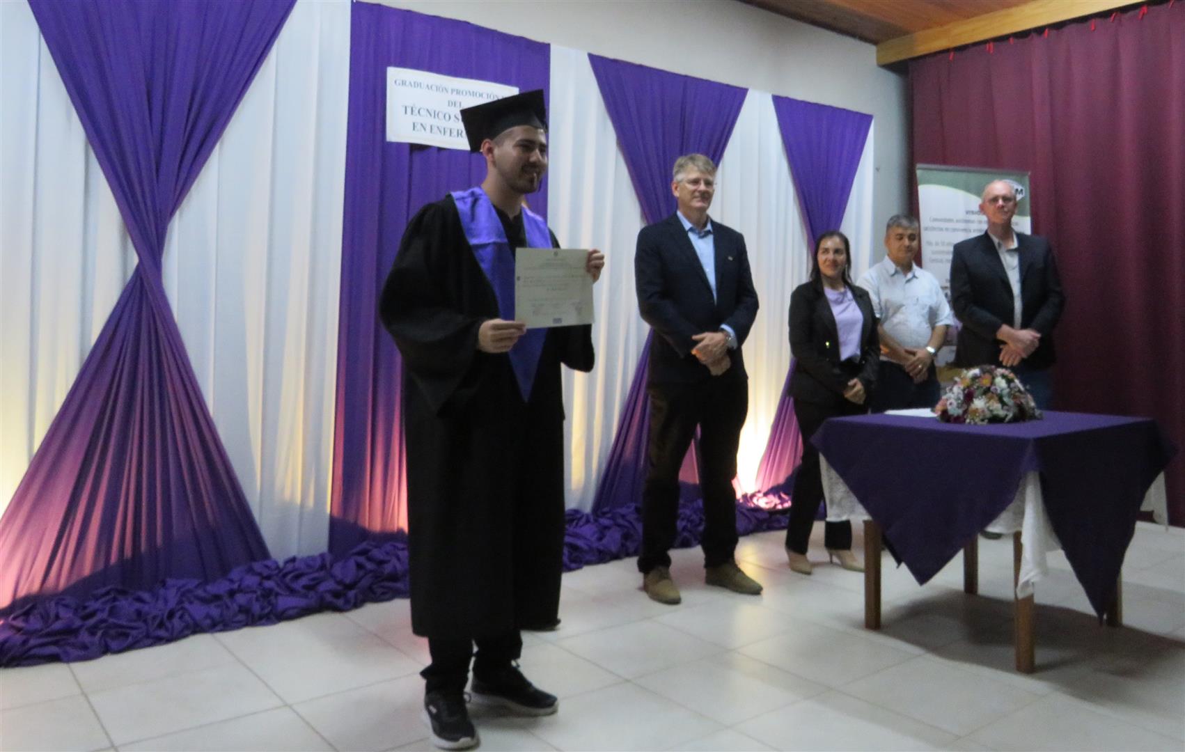 Continuando con algunas palabras, la Mgtr. Juana Enns: ¨Expreso mi admiración y gratitud a estos egresados por la perseverancia en alcanzar la meta, han llegado como cualquier otro jóven a la institución, con grandes sueños, expectativas y mucha incertidumbre (incertidumbre por el hecho de que su formación inició en la etapa de la pandemia global que atravesamos.) Con un ambiente educacional a distancia, han experimentado desde sus lugares diversas dificultades en virtud del aislamiento, dificultades de comunicación social y ansiedad, pero a pesar de todo, se ha logrado la meta. Con certeza hoy puedo decir que se logró con éxito la formación profesional en tiempo atípico, expreso mi gratitud a los egresados, a los directivos, al cuerpo de docentes. Hemos aprendido que si existe buena disposición entre todos se logra alcanzar el objetivo.”