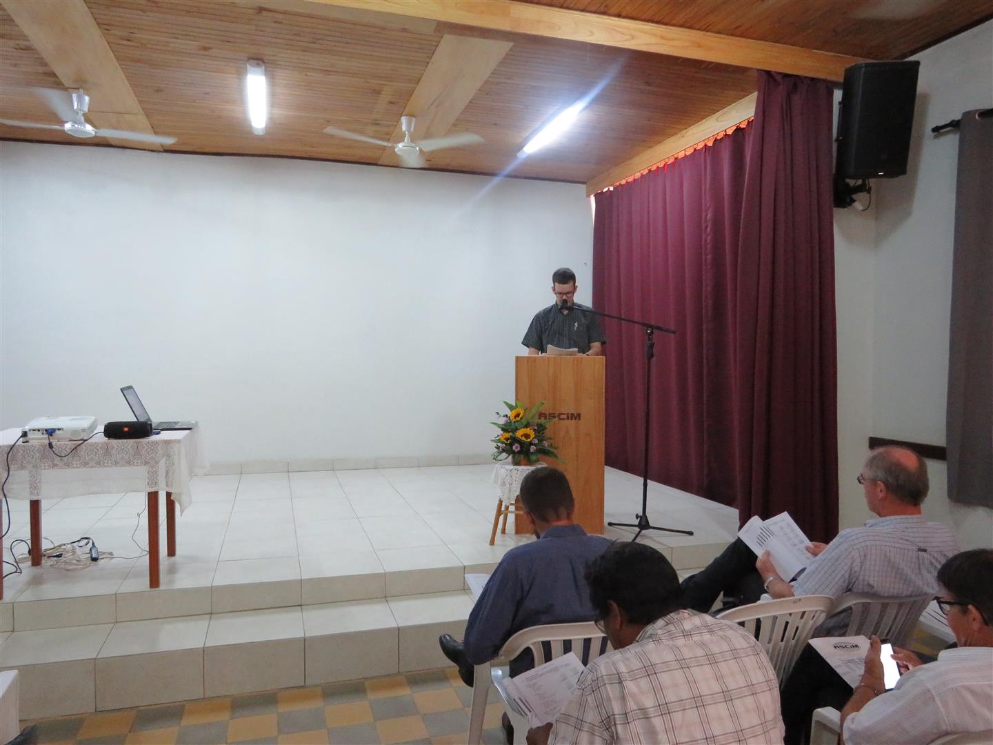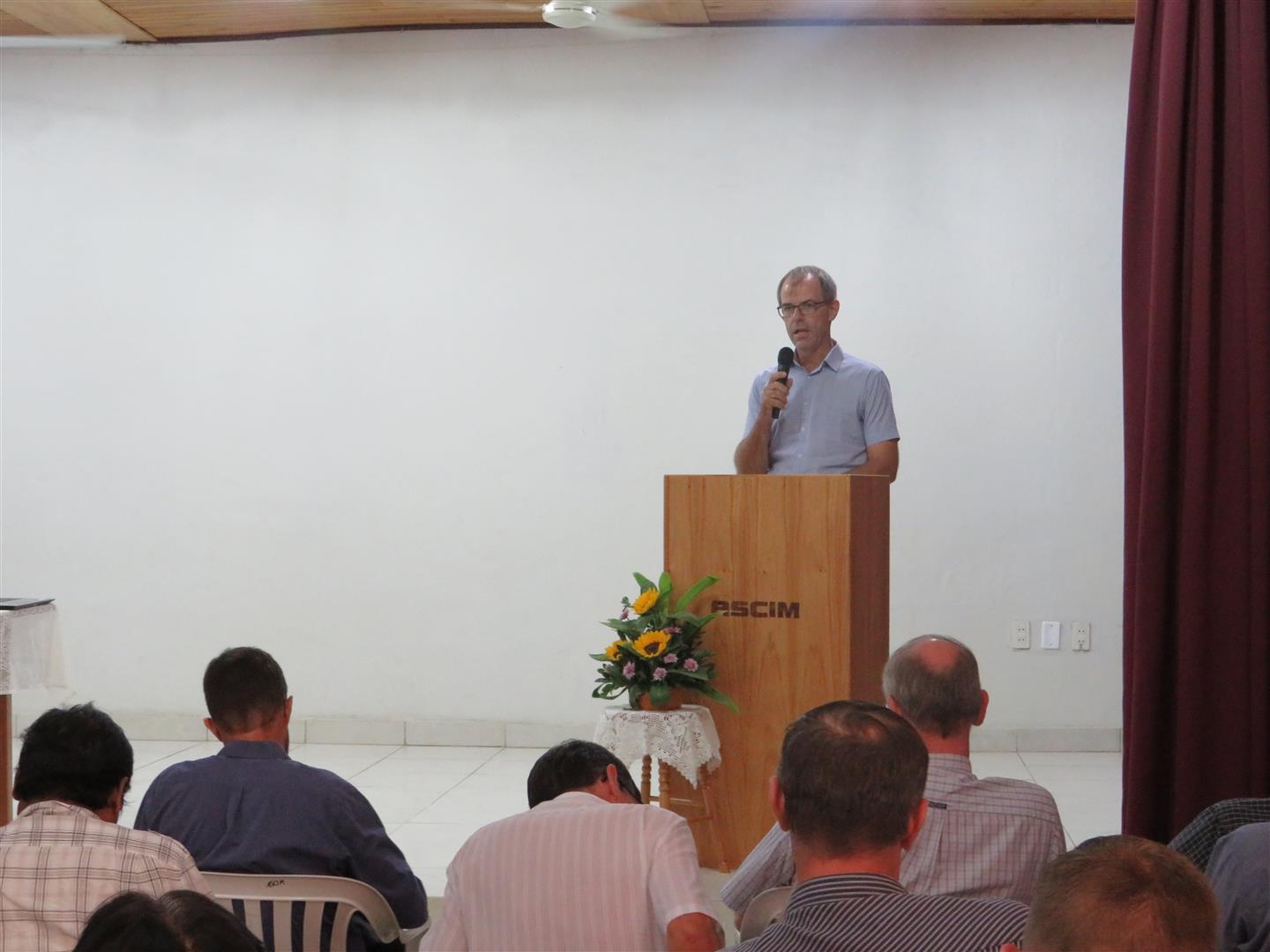 El presidente de la ASCIM, Sr. Norman Toews, dio la bienvenida a los 49 socios y 59 no socios que se presentaron en el auditorio de la ASCIM en Yalve Sanga a fin de participar de la asamblea ordinaria. Luego, el Sr. Robert Janzen, pastor de la iglesia MG-Weidenfeld, brindó un devocional acerca del pasaje bíblico que se encuentra en Mateo 7:13 – 14. Culminó el devocional con la frase: “La vida es muy corta como para no seguir a Jesús. La eternidad es muy larga como para no estar en la presencia de Jesús.”